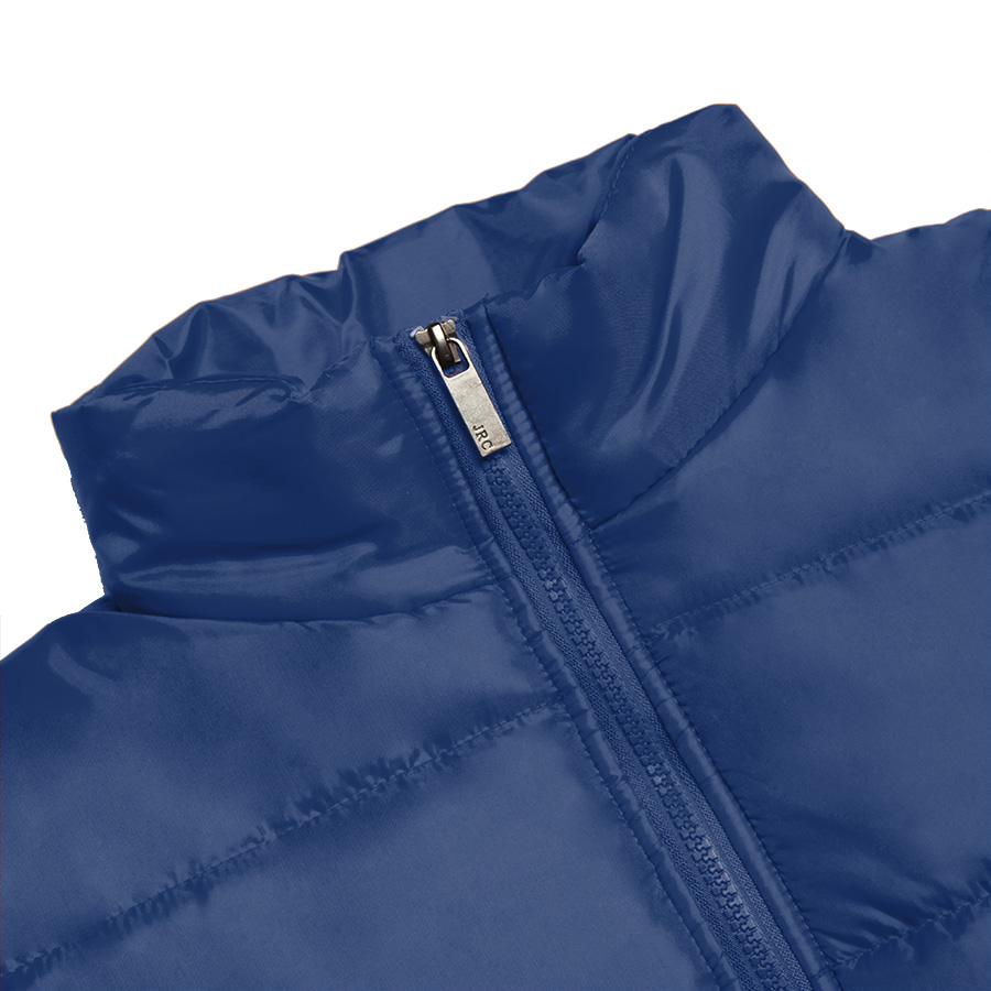 Основная ткань: цвет, близкий к Pantone 293 U, подкладка: цвет, близкий к Pantone Hexachrome Black C Удобный воротник-стойка. Облегченная пластиковая молния с металличесиким брендированным пуллером JRC. Два передних кармана на молнии. Удобный внутренний карман на липучке.