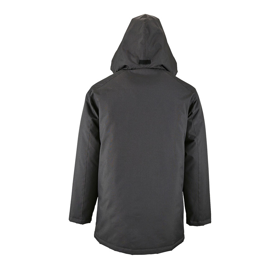 Куртка-парка унисекс на стеганой подкладке ROBYN 170 Основная ткань «оксфорд»: 100% полиэстер с водоотталкивающей пропиткой Стеганая подкладка: 100% полиэстер Утеплитель: 100% полиэстер, 170 г м2 Стильная теплая парка унисекс прямого кроя станет необходимой в промозглое осенне-зимнее время года. Благодаря пропитке ПВХ - (PVC) поливинилхлорид, ткань полностью прорезинена внутри, что делает ее водонепроницаемой и формоустойчивой. Куртка на застежке-молнии с двумя пуллерами для удобства открытия и планкой на скрытых кнопках надежно убережет от попадания ветра и влаги. Внутренняя планка на верхней части куртки обезопасит от прищемления молнией при закрытии. Высокий воротник- стойка (7 см) с внутренней стороны отделан флисом для мягкости и комфорта, а снаружи прячет в себя капюшон на кулиске с резинкой и стопером. Капюшон без утеплителя всегда можно легко достать и разложить, если погода резко испортится, а потом также убрать. Длинные рукава с утеплителем внутри и на застежке-липучке помогут сохранить тепло. 2 внешних кармана на молнии и один внутренний на застежке-липучке уберегут небольшие предметы от намокания. Изнутри на стеганной подкладке внизу имеется технологический карман для удобства персонализации. Упакована куртка в прозрачный фирменный пластиковый пакет Sol's. Цвет близкий к PANTONE Cool gray 11C