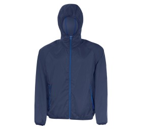 Легкая и компактная ветровка унисекс SHORE из водоотталкивающего и ветрозащитного материала. Два боковых кармана на молнии. Рукава реглан. Манжеты, капюшон и низ ветровки на эластичной тесьме. Молнии ветровки контрастного цвета. Складывается ветровка в свой карман на молнии. Цвет близкий к PANTONE 296C
