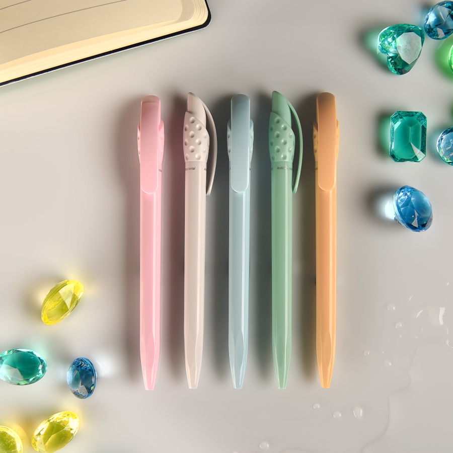 Pantone, близкий к 290C. Стержень X-20 с синими чернилами Dokumental и толщиной пишущего узла 1 мм. Обеспечивает до 2000 м письма. Коллекция ручек SafeTouch из антибактериального пластика создана для мест, где важна забота о чистоте и стерильности. Например, медицинских лабораторий и клиник, для мест массового оформления документов - банков, госучерждений, зон клиентского сервиса, где посетители используют одну и ту же ручку. Благодаря специальному компоненту SEANTEX, который используется при производстве ручек SafeTouch, снижается риск накопления бактерий на поверхности ручек в течение дня. Антибактериальные свойства пластика, из которого производятся ручки SafeTouch, подтверждены лабораторными исследованиями, выполненными по международному стандарту ISO 22196:2011. Материал безопасен для кожи и сохраняет свои свойства в течение всего срока службы ручек. ___ Дополнительные файлы: - заключение о результатах испытаний пластика c антибактериальной добавкой SEANTEX по стандарту ISO 22196:2011; - свидетельство о безопасности антибактериальной добавки SEANTEX, выданное компании-производителю добавки; - официальное письмо о безопасности материалов ручек SafeTouch.