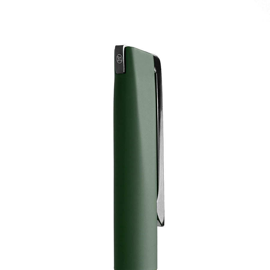 Строгий клип, очертания которого напоминают силуэт секиры - символ хладнокровия и взвешенных решений.Стильный и запоминающийся облик ручке придает актуальное сочетание отделки "gun" и “Soft touch” покрытия насыщенных оттенков.При гравировке “Soft touch” покрытия на нижней части корпуса вскрывается глянцевая подложка цвета вороненой стали.Нижняя часть из нержавеющей стали, верхняя - из пластика. Клип из латуни. Гравировка на верхней части не рекомендуется. Результат гравировки зависит от настроек оборудования.• Pantone, близкий к 560С.• Металлический корпус и клип. • Поворотный механизм подачи стержня.• Пулевидный пишущий узел 1.0 мм с шариком из карбида вольфрама.• Длина линии письма 1000 - 1200 м.• Чернил Dokumental, цвет синий.• Сменный стержень Metal Cross.• Угол поворота корпуса: 270°.• Виды нанесения: лазерная гравировка, тампопечать.