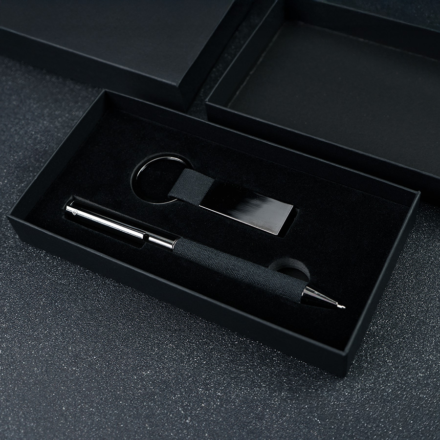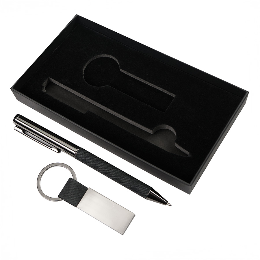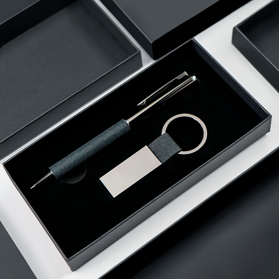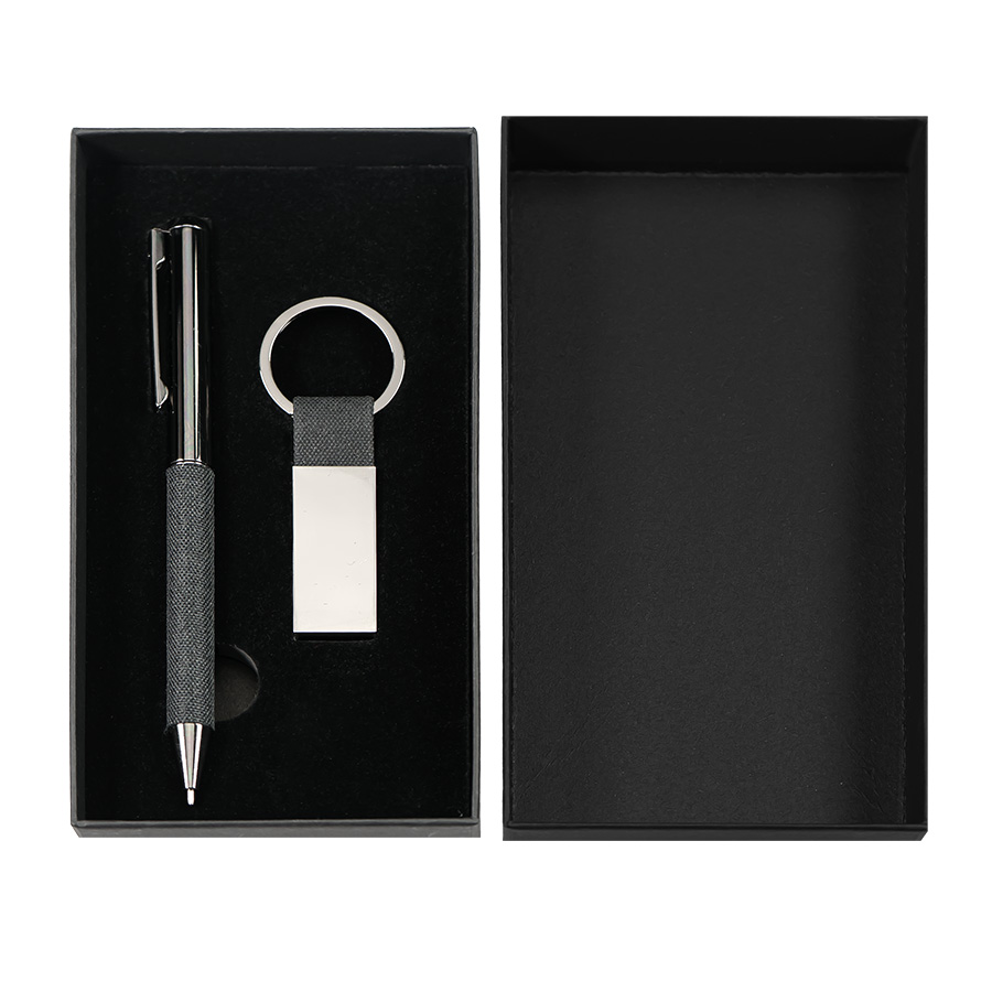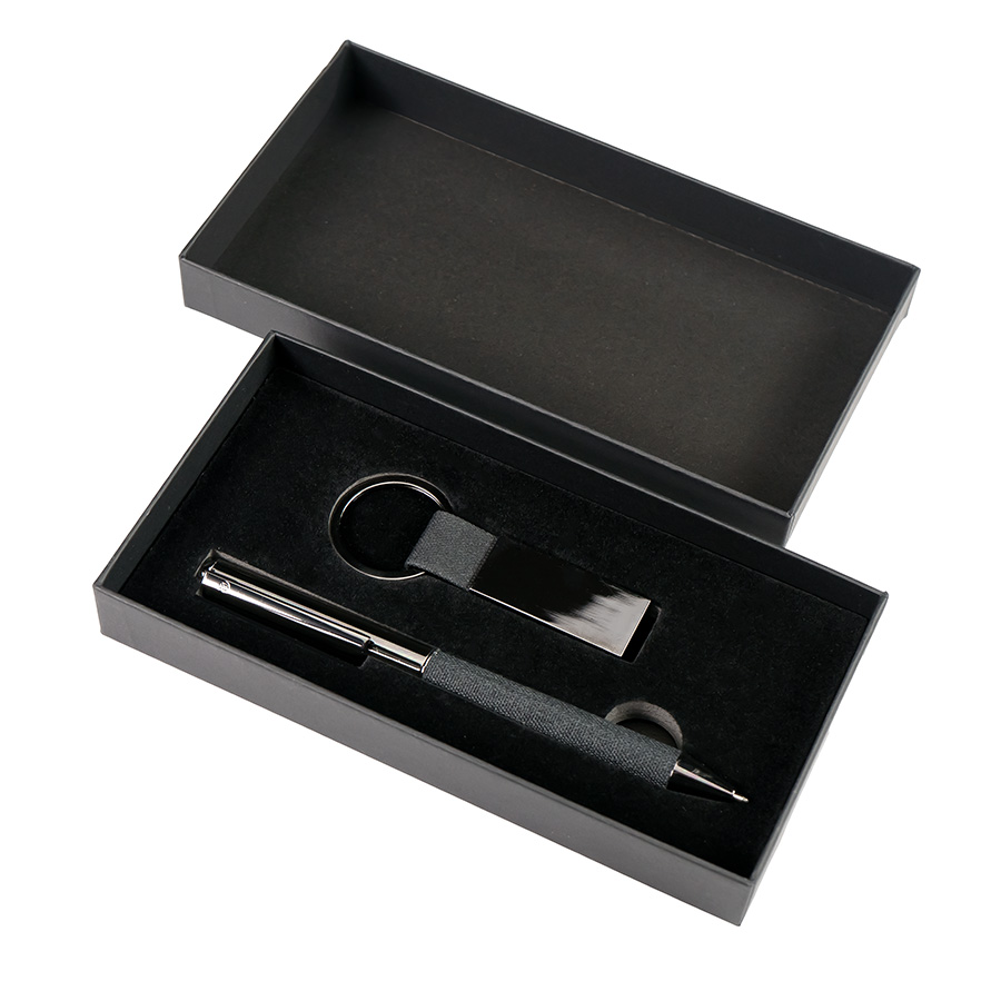 Набор ручка+ брелок COLLISION, черный/темно-серый, металл, пластик, картон