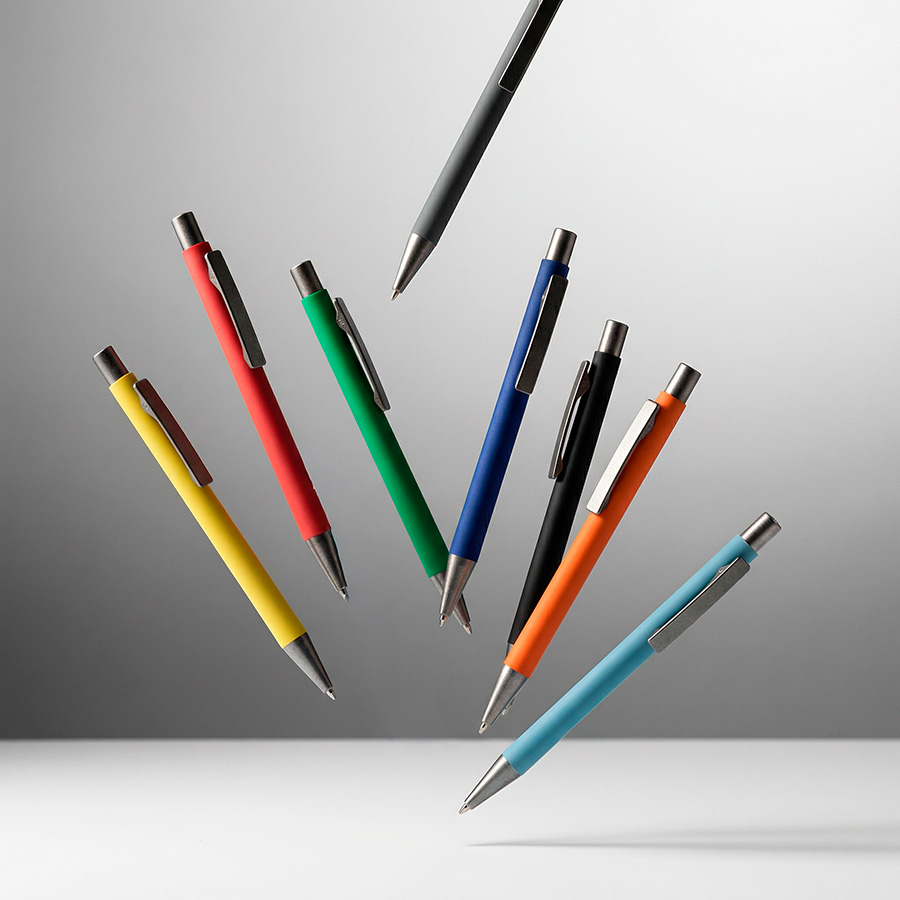 Ручка шариковая FACTOR, голубой/темно-серый, металл, пластик, софт-покрытие