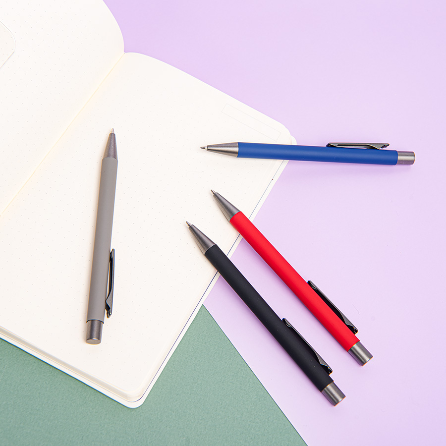 Ручка шариковая FACTOR, красный/темно-серый, металл, пластик, софт-покрытие