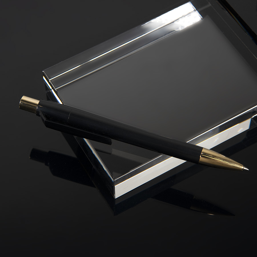 Элегантная ручка Mood - символ благородной роскоши и отражение актуальных тенденций мира дизайна. Ручка обладает приятной тяжестью, свойственной металлическим ручкам, и комфортно лежит в руке благодаря плавной обтекаемой форме корпуса. Широкий клип и корпус обеспечивают большое поле для нанесения логотипа, а высококачественный ABS-пластик гарантирует его стойкость и великолепный внешний вид ручки. Металлические носик и кнопка с зеркальным покрытием "под желтое золото". Процесс обработки металлических деталей проходит под тщательным индивидуальным котролем, что гарантирует гладкость и безупречный блеск покрытия. Цвет корпуса, близкий к Pantone Black C. Стержень Plastic Parker type, пишущий узел 1.0 мм, синие чернила Dokumental, до 4000 м письма. Производство : Италия