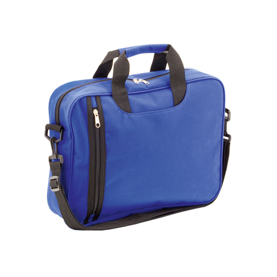 Сумка для документов из мягкого полиэстера 600D. С застежкой-молнией и оригинальным передним карманом. Отделение под пишущие принадлежности, усиленные ручки для переноски, регулируемый плечевой ремень с карабинами.