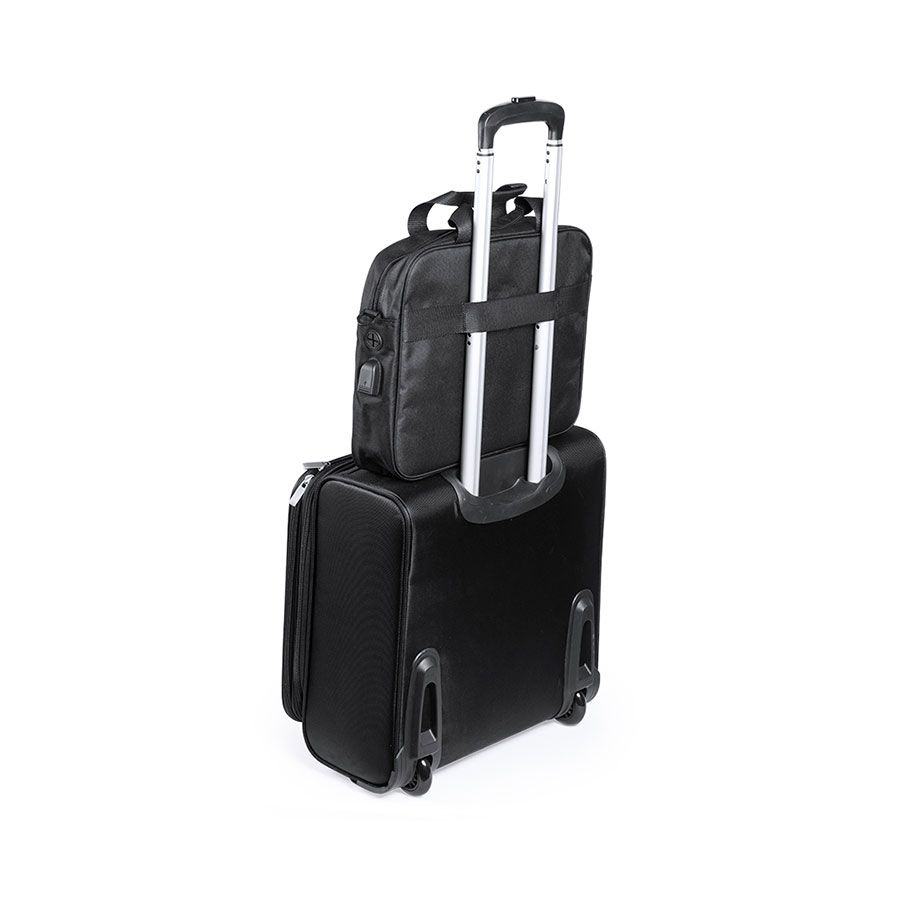 Сумка для документов из прочного полиэстера 600D с черным покрытием и застежкой-молнией. С выходом для наушников и внутренним отсеком с USB-портом для подключения powerbank (не входит в комплект). С прочными усиленными ручками и регулируемым ремнем. Внутри есть отделение с мягкой подкладкой для ноутбуков до 15 дюймов и отделение для планшетов до 10 дюймов.