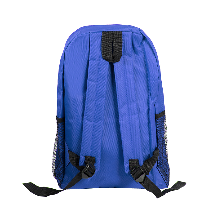 Цвет, близкий к Pantone Reflex Blue C Легкий промо-рюкзак из прочного полиэстера 600D с одним основным отсеком и внешним карманом на молнии. Два боковых кармана из сеточки на резинке добавят места для бутылочки с водой или хранения мелких предметов. Регулируемые мягкие лямки помогут сделать рюкзак с вещами почти невесомым.