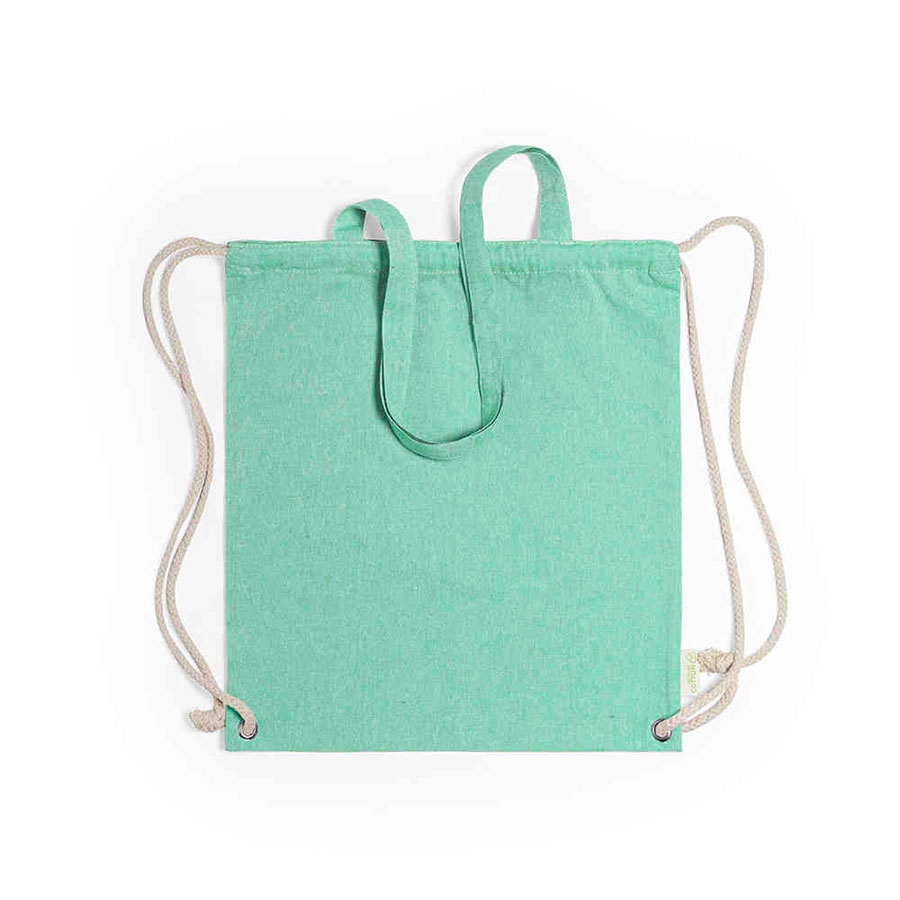 Сумка-рюкзак выполнен из 100% переработанного хлопка, плотностью 140 г м2. Близкий к Pantone Green 344 C Переработанный хлопок получается из отходов текстильного производства или из старой одежды. Исходный материал измельчается, потом из этой массы вытягивают нити, из которых ткут новую ткань. В переработанных тканях модная индустрия видит будущее. И оно уже здесь. Сумки, созданные из переработанного хлопка, ничуть не хуже «первичных». Они не отличаются на ощупь и служат так же долго, как и модели из не переработанного материала. Ручки для переноски 70 см и шнуры из хлопкас усиленными метллическими люверсами. Сумка выдерживает нагрузку до 9 кг.