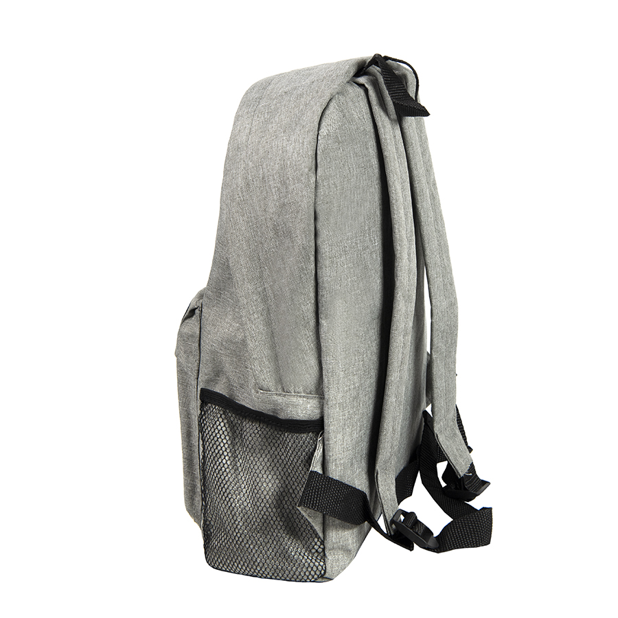 Цвет, близкий к Pantone Cool Grey 6 C Стильный компактный городской рюкзак из плотного полиэстера 600D станет идеальным помощником. Водозащитный полиэстер защитит от промокания ваши вещи, а клапаны закрывающие молнию, предотвратят попадание воды внутрь. Вместительный внешний карман с силиконовым разъемом для наушников и боковые карманы из сетки с эластичной резинкой добавят дополнительного места для нужных вещей.