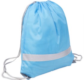 Просто и безопасно! Рюкзак-мешок RAY из полиэстера 210Dсо светоотражающей полосой спереди, светоотражающими уголками,усиленными металлическими люверсамиЛегко и просто затягивается по верхней части серыми шнурами.