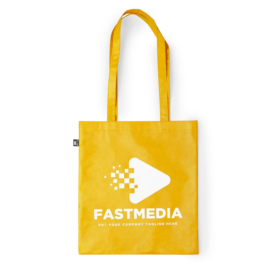 Сумка для покупок с удлиненными ручками из материала rPET рециклированного полиэстера. Если PET (ПЭТ) – это термопластичный полиэфир, самый распространенный материал для производства пластиковых бутылок, флаконов и банок. То rPET – это переработанный в новые продукты пластик. Переработанный ПЭТ (rPET) используется для самых разнообразных продуктов: от текстиля для дома, одежды и до внутренних деталей автомобиля. Плюсы переработанного полиэстера в том, что на производство вторичного полиэстера используется на 2 3 меньше электроэнергии и на 90% меньше воды, чем на производство первичного полиэстера. Ткань, созданная из переработанного полиэстера, производится из пластиковых бутылок, что предотвращает засорение земли и океана. Основная концепция rPET в том, что покупая данную сумку, вы принимаете участие в переработке пластиковых бутылок и помогаете сократить количество пластиковых отходов. На сумке есть специальный лейбл, указывающий на то, что продукция выполнена из rPET. Сумка выдерживает нагрузку до 5 кг. Благодаря своей форме отлично подходит для ежедневного использования.Цвет близкий к Pantone Yellow 109 C