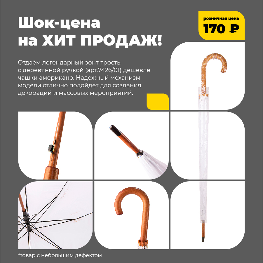 Полуавтоматический зонт-трость с деревянной ручкой Индивидуальная упаковка