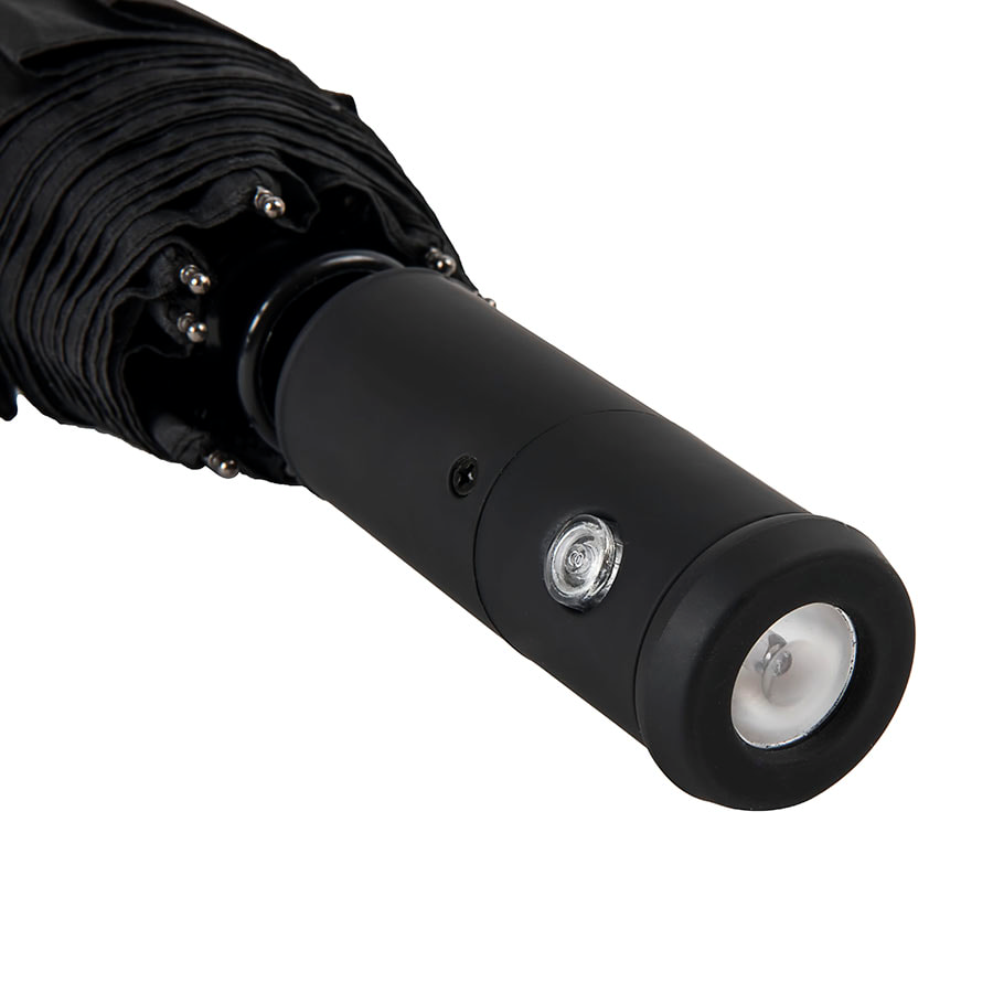 Зонт PRESTON складной с ручкой-фонариком, полуавтомат; черный; D=100 см; 100% полиэстер