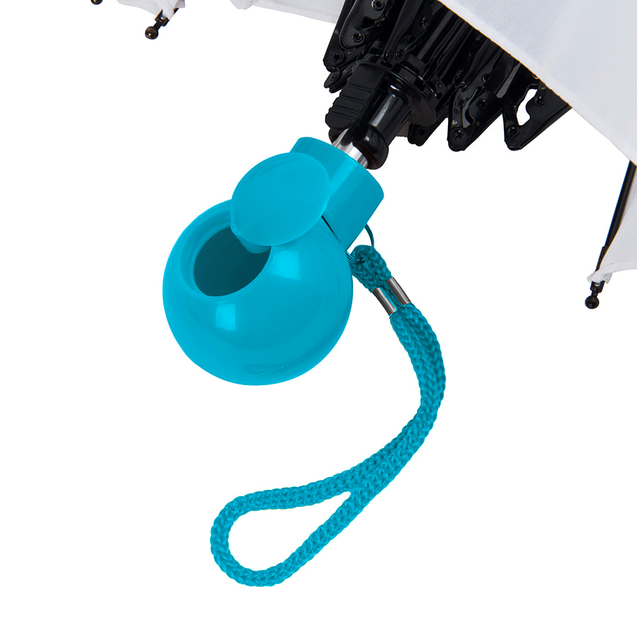 Зонт оснащен особой ручкой, в которую можно убрать чехол от зонта,чтобы он не потерялся. Широкая палитра цветов ручек, охватывает все основные корпоративные цвета. 10 цветов ручек соответствуют по Pantone зарядным устройствам Seashell, ручкам Forte и цветным донышкам кружек Fun. Белый купол как белый лист для ваших фантазий!