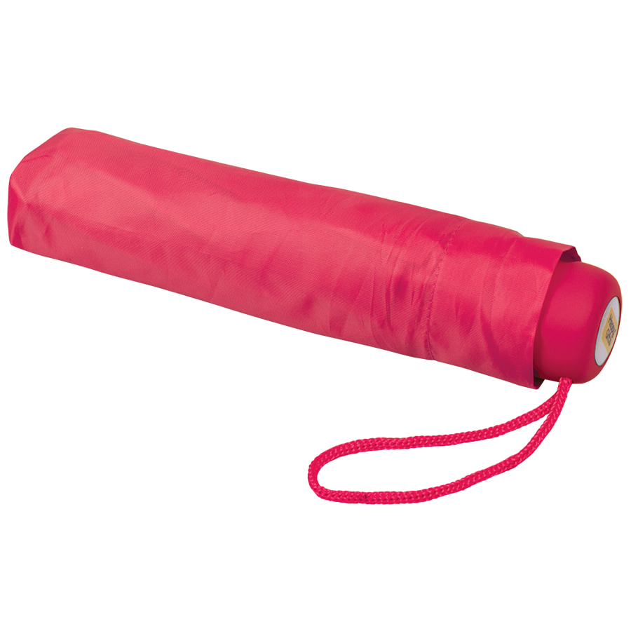 Цвет купола близкий Pantone 199 Cпластиковая ручка с soft - touch поверхностьюдлина ручки зонта в разложенном состоянии 54,5 см от основанияЗонт в 3 сложения