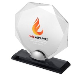 Прекрасный сувенир для вручения коллегам и партнерам за выдающиеся достижения. Оригинальная форма напоминает ограненный бриллиант. Основание выполнено из цветного стекла.