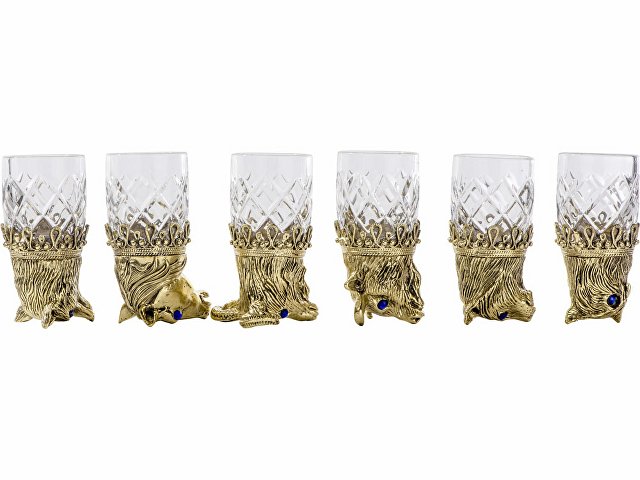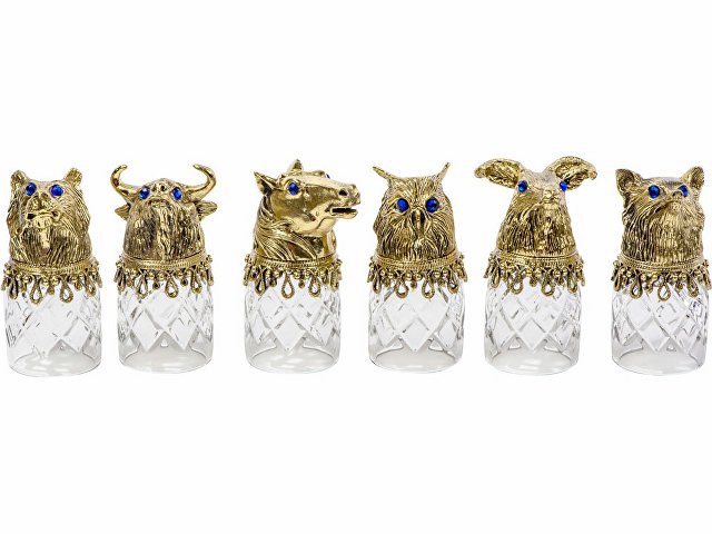 Цвет товара: стопки- прозрачный/золотистый, шкатулка- темно-коричневый/рыжий