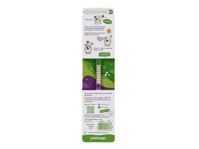 Комплектность: карандаш из бумаги, семена "Базилик Ароматный"