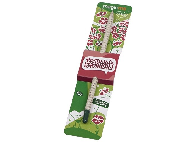 Растущий карандаш сделан из бумаги и на кончике у него желатиновая растворяющаяся капсула с семенами гвоздики.
