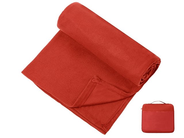 Плед для путешествий Flight в чехле с ручкой и карманом, красный