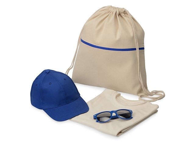 Цвет товара: рюкзак- натуральный/синий, футболка- натуральный, бейсболка- синий, очки- синий