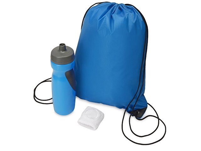 Цвет товара: рюкзак- голубой, бутылка- голубой/серый, напульсник- белый