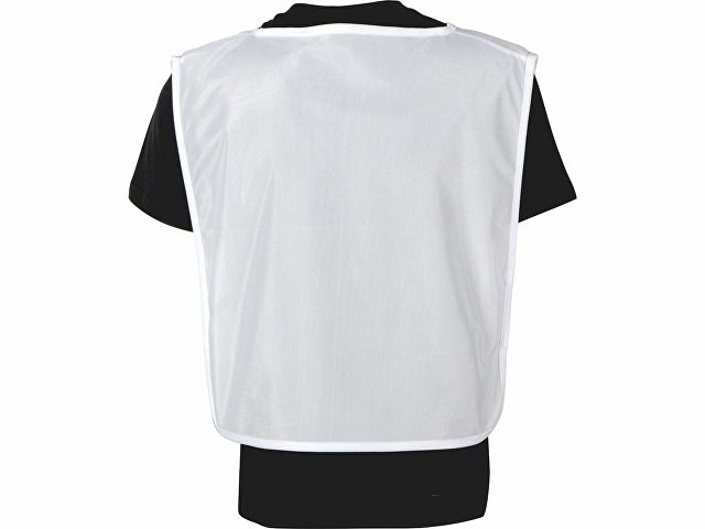 Универсальная спортивная манишка белого цвета. Боковые резинки обеспечивают удобство одевания и снятия. Материал манишки легко стирается и быстро сохнет.