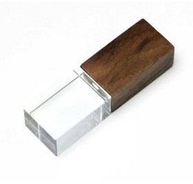 Стеклянная флешка под 3-D гравировку c деревянным колпачком., объем памяти 64 ГБ. Стеклянный корпус.