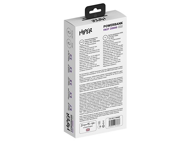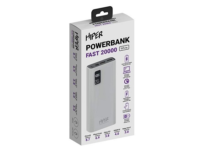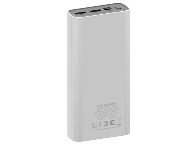 Портативный внешний аккумулятор HIPER FAST 20000 емкостью 20000 мАч (74Втч) оснащён двунаправленным портом USB-C, Micro-USB входом для зарядки, с поддержкой быстрой зарядки аккумулятора QC и PD, 2xUSB-A выходами, максимальный выходной ток 5А, максимальная мощность 22,5 Вт, поддержка быстрой зарядки стандарта QC 18 Вт, поддержка быстрой зарядки стандарта PD 18 Вт, стильный дизайн.