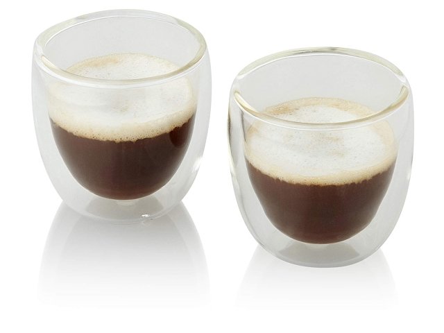 Набор Boda для эспрессо из 2 предметов. Стаканы для эспрессо с двойными стенками емкостью 80 мл. Набор предлагается в роскошной подарочной коробке. Шильд для нанесения логотипа включен в комплект. Стекло.