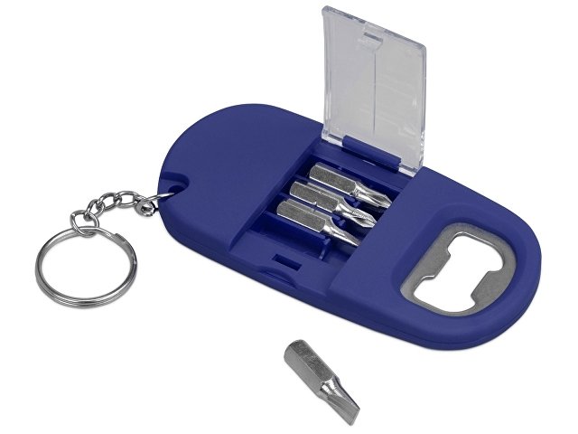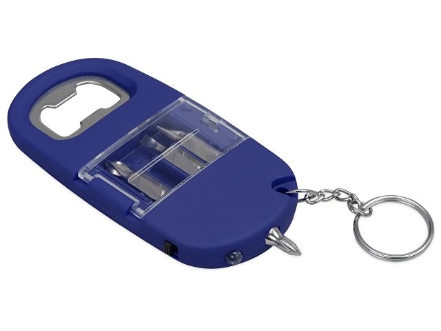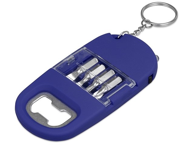 Брелок-открывалка с отвертками и фонариком "Uni", софт-тач, синий