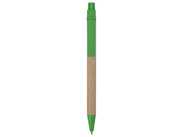 Шариковая ручка с нажимным механизмом. Удобный корпус сделан из переработанного картона. Клип, кнопка и носик ручки на 50% состоят из пшеничной соломы, на 50% — из переработанного пластика. Настоящая находка для тех, кто предпочитает использовать изделия из биоразлагаемых материалов и заботится о сохранности окружающей среды.