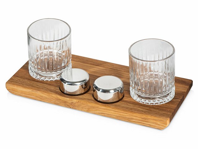 Комплектность: деревянная подставка 28,5 х 12,9 х 2,1 см, бокал 210 мл- 2 шт, шайба для виски d5 х 2,8 см- 2 шт, упаковочная коробка