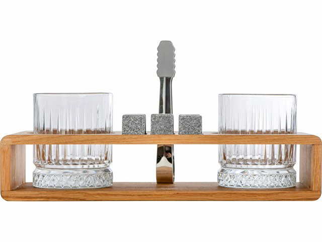 Комплектность: деревянная подставка 28 х 11,6 х 5,7 см, бокал 210 мл- 2 шт, камень для виски 2 х 2 см- 6 шт, щипцы, упаковочная коробка