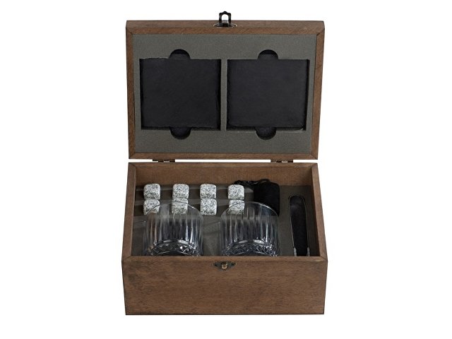 Набор для виски "Jack" состоит из двух стаканов с толстым дном, охлаждающих камней в мешочке, удобных щипцов и двух лаконичных костеров из сланцевого камня. Сет упакован в деревянную подарочную шкатулку, которая создает праздничное настроение еще до того, как вы откроете крышку. Более того, это уже готовый набор для подарка.