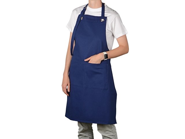 Хлопковый фартук Delight с карманом и регулируемыми завязками, синий нэйви