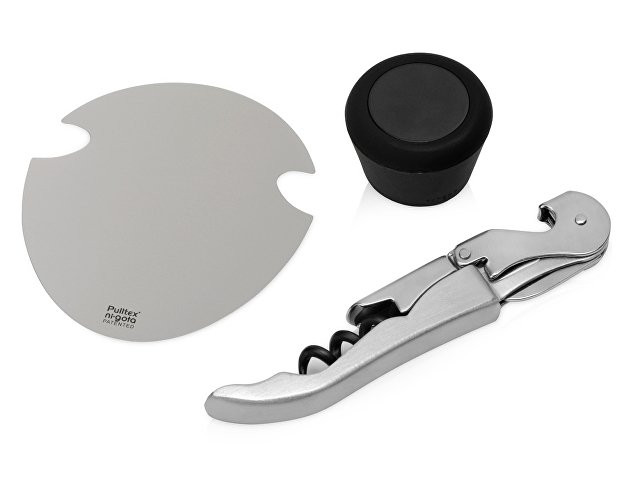 Комплектность: нож сомелье 2 х 1,2 х 12 см, пробка для бутылки d3 х d4 х 2,5 см, форма для воронки 8,7 х 7,9 см