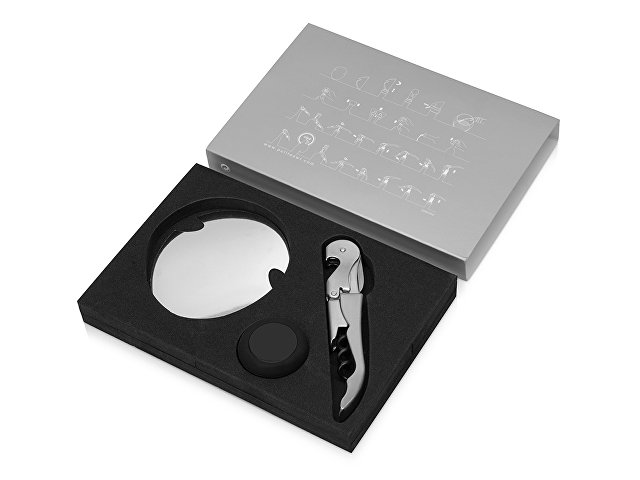 Универсальный набор аксессуаров для вина от Pulltex имеет все важное и необходимое для потребления и сохранения вашего напитка, а именно: классический нож-сомелье, силиконовую пробку и каплеуловитель, с помощью которого очень удобно разливать вино по бокалам. Набор поставляется в подарочной коробке с ложементом.