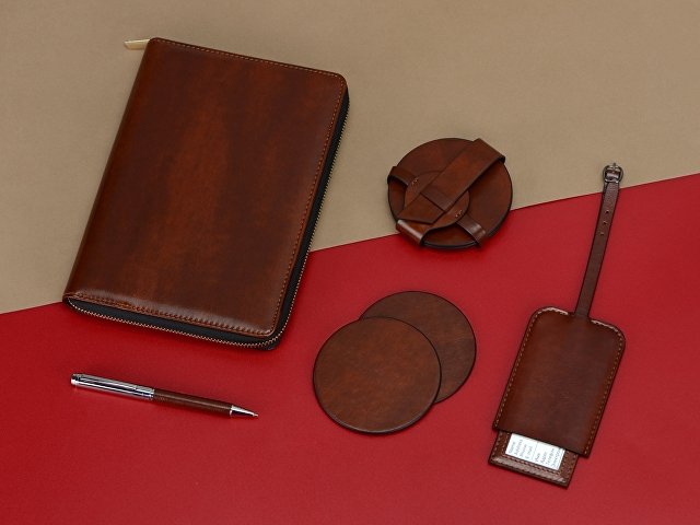 Набор состоит из четырех подставок и ремня-чехла, с помощью которого костеры очень удобно хранить в одном месте. Подставки круглой формы идеально подойдут для бокалов разного диаметра. Универсальная форма, легко моющийся материал, персонализация на самих костерах, а также ремешке.