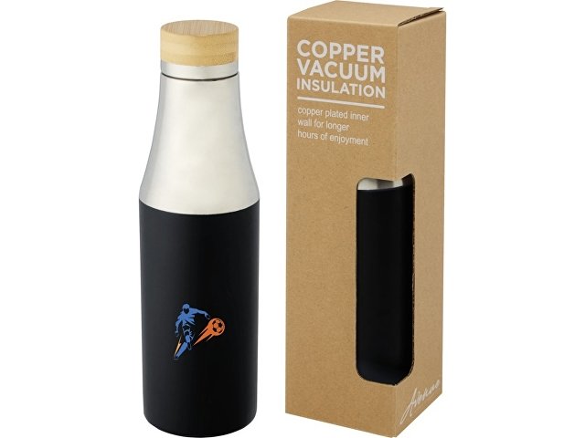 Hulan Бутылка объемом 540 мл с вакуумной изоляцией из меди и бамбуковой крышкой, черный