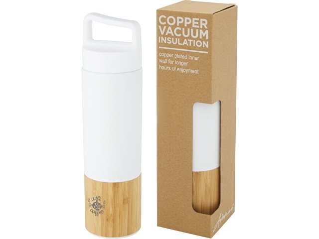 Torne Бутылка из нержавеющей стали объемом 540 мл с медной вакуумной изоляцией и внешней стенкой из бамбука, белый