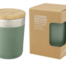 Кружка с двойными стенками и медной вакуумной изоляцией, современный дизайн и крышка из органического бамбука. Благодаря изоляции и нержавеющей стали 18/8 напитки несколько часов остаются горячими или холодными. Без содержания BPA, протестирован и одобрен согласно немецкому законодательству о безопасности пищевых продуктов (LFGB), проверен на содержание фталатов согласно нормам REACH. Подходит для большинства кофемашин, что делает эту кружку идеальным вариантом для работы и путешествий. Объем 300 мл. Поставляется в подарочной коробке из переработанного картона. Рекомендуется мыть вручную. нержавеющая сталь, Бамбуковое дерево.