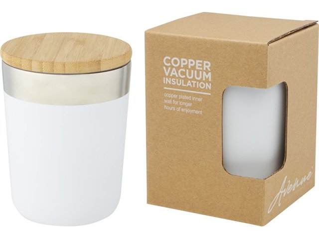 Lagan Кружка с медной вакуумной изоляцией объемом 300 мл и бамбуковой крышкой, белый