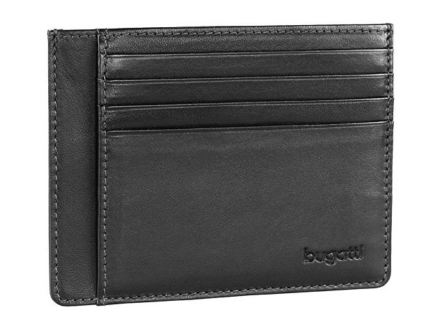 Портмоне для кредитных карт BUGATTI Primo, чёрное, натуральная воловья кожа, 11,5х0,5х9 см