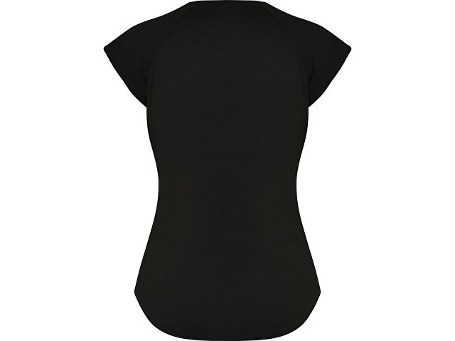 Спортивная женская футболка с коротким рукавом реглан. Вырез горловины V. Полотно из полиэстера на ощупь напоминающее хлопок. Приталенный силуэт.