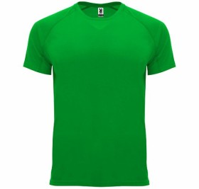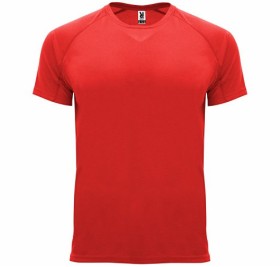Спортивная футболка с коротким рукавом реглан. Круглый вырез горловины с отделкой плоским швом. Рукав сложного кроя для обеспечения дополнительного удобства при занятиях спортом. Отделка плоским швом с застилом по пройме и рукавам.