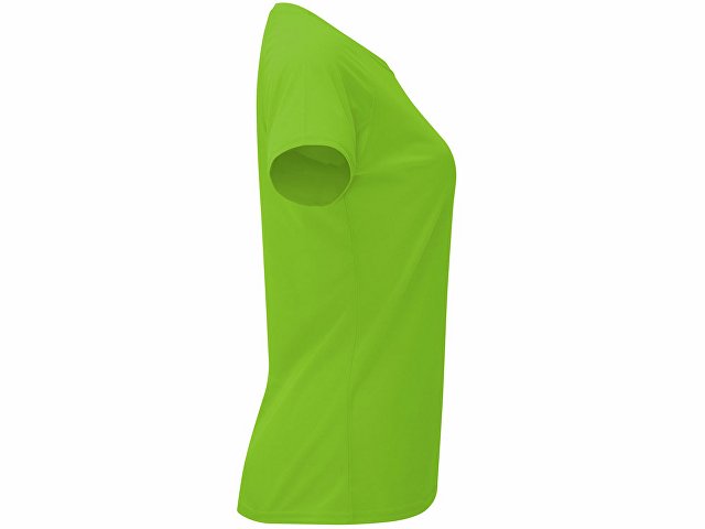 Спортивная футболка с коротким рукавом реглан для женщин. Круглый вырез горловины с отделкой плоским швом. Рукав сложного кроя для обеспечения дополнительного удобства при занятиях спортом. Отделка плоским швом с застилом по пройме и рукавам.
