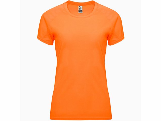 Спортивная футболка с коротким рукавом реглан для женщин. Круглый вырез горловины с отделкой плоским швом. Рукав сложного кроя для обеспечения дополнительного удобства при занятиях спортом. Отделка плоским швом с застилом по пройме и рукавам.