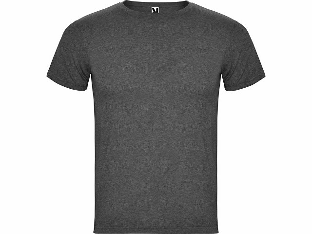 Футболка без боковых швов с коротким рукавом в меланжевом эффекте. Риб горловины 1х1 дополнительно укреплен двойной строчкой.
